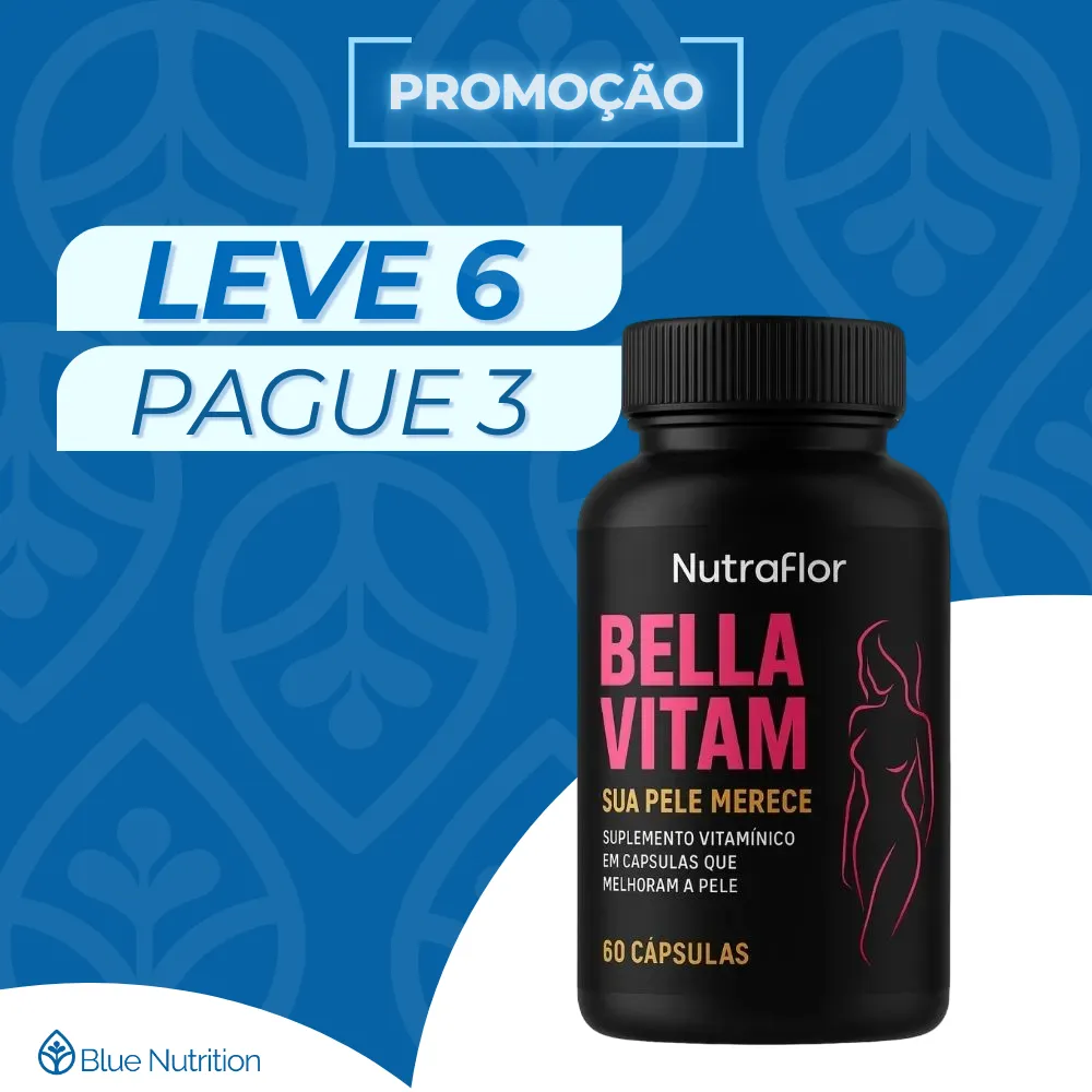 Bem-vindo à Blue Nutrition! O Bella Vitam é um suplemento alimentar natural desenvolvido para auxiliar na saúde da pele, cabelo e unhas, promovendo um aspecto mais saudável e radiante. Sua fórmula combina ingredientes como colágeno, biotina, ácido hialurônico e vitaminas essenciais, visando fortalecer e melhorar a aparência desses tecidos.