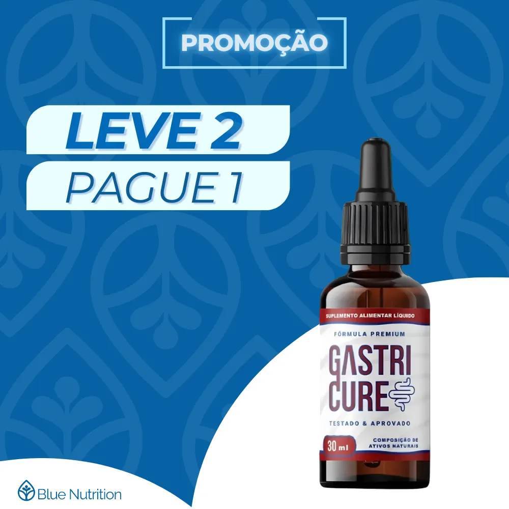 Bem-vindo à Blue Nutrition! O GastriCure é um suplemento alimentar natural formulado para auxiliar na saúde digestiva, promovendo o alívio de desconfortos estomacais e o bem-estar geral. Costuma conter ingredientes como cardo-santo (Cnicus benedictus), hortelã, tanchagem (Plantago major) e passiflora, conhecidos por suas propriedades digestivas e calmantes.