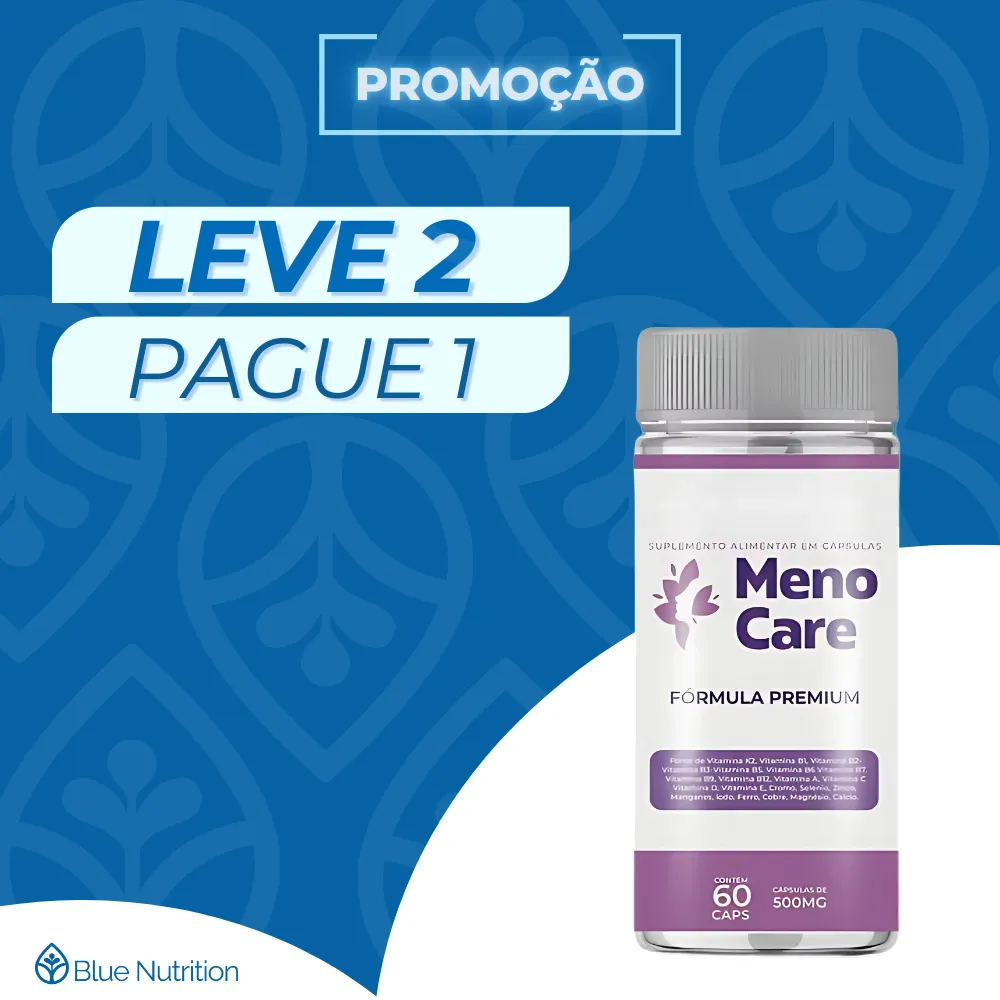 Bem-vindo à Blue Nutrition! O Meno Care é um suplemento alimentar natural desenvolvido para auxiliar mulheres durante a menopausa, aliviando sintomas como ondas de calor, insônia e alterações de humor. Sua fórmula combina ingredientes que promovem o equilíbrio hormonal e o bem-estar geral.